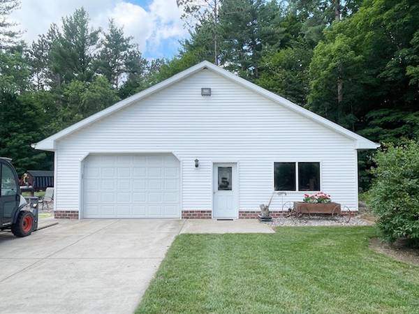 L-8187: Secluded in a beautifully landscaped setting, 4-bedrm, 2-bath ranch offers comfort and space. Consisting of 39+ acres w/ 5 +/- acres cleared w/ a food plot, balance wooded w/ manicured roads throughout. Woods is enrolled in Closed MFL w/ great timber. The 2,370 sqft home features an open-concept great room w/ vaulted ceilings, kitchen w/ abundant knotty alder cabinetry, and convenient main-level laundry. The partially finished, full basement w/ egress windows. Heated 2-car attached garage, plus two outbuildings: a 36’x40’ heated outbuilding w/ a full bath, and a 40’x64’ shop w/ concrete floor—perfect for hobbies, storage, or a home business. Outdoor living is just as inviting, with spacious stamped concrete patios, and serene wooded surroundings.