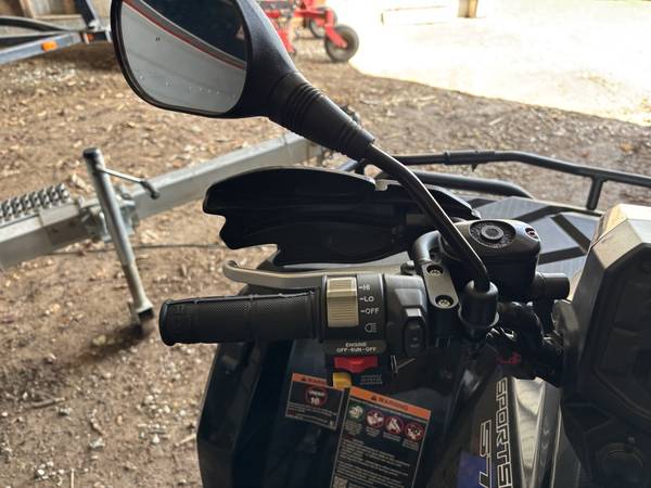 NEW LOWERED PRICE! 2022 Polaris 570 Sportsman trail edition, EPS, active descent control, engine braking system, 14" aluminum rims, 26" Duro tires, full LED lighting, 2,500# winch, sealed dual A arm front suspension, painted springs, and exclusive automotive Onyx black paint. Hand/thumb warmers, mirrors, and polaris hand guards. Extremely low 130 miles and 22 hrs.