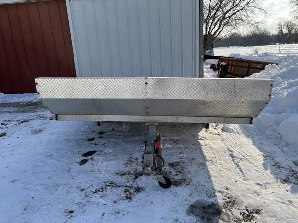 Karavan Ultra snowmobile trailer 8.5'x10'. Aluminum construction with alumninum diamond plate heavy duty salt shield. Track mats, ski guides, adjustable ski tie-downs, treated plywood in good condition, tires are in good condition, and all the lights work properly. Very nice trailer for the money. $1,695 cash. PH/Text 920-six-seven-six-9845.