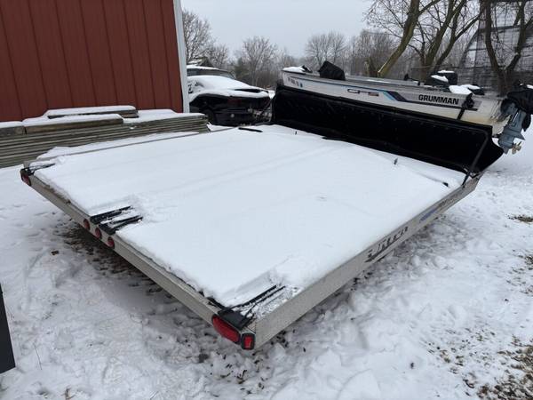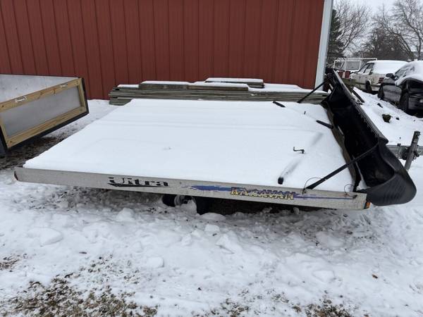 Karavan Ultra snowmobile trailer 8.5'x10'. Aluminum construction with a newer Caliber heavy duty salt shield. Heavy duty ski guides, adjustable ski tie-downs, treated plywood in good condition, tires are in good condition, and all the lights work properly. Galvanized tongue with newer jack, and a new heavy duty galvanized axle, new bearings with bearing buddies. Trailer was just completely rebuilt. Caliber salt shield is easily removalbe if needed (nice option). Very nice trailer for the money. $1,695 cash. PH/Text 920-six-seven-six-9845.