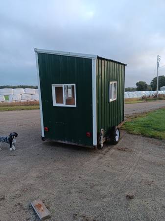 ice shack 6 by 10 its got lights radio lp heat fans I always used it just fishing but it can also by used for sturgeon spearing also. You can cut a 3 by 4 foot hole