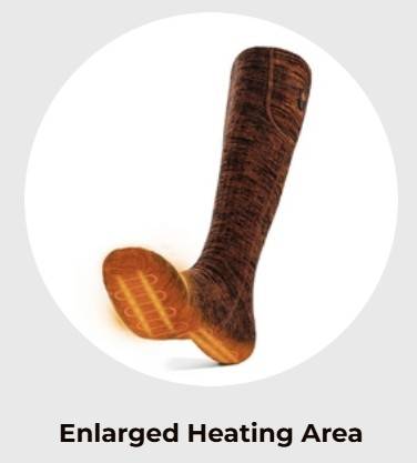 • The full sole of the foot is integrated with heating elements forming a heating area that is 70% larger than other Oruro heated socks.