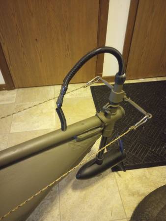 Motorized duck skiff, completely quiet, comes ready to Hunt or fish, it's registered, has forward, reverse, 5 speeds, hand controls, navigation lights, pontoons, battery etc motor, pontoons &...