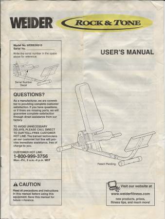 WEIDER ROCK and TONE. MODEL #WEBE06010. F.C.F.S. Cash and Pickup only. No phone, text, trades or meet ups.