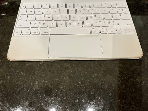 The Magic Keyboard shows a lot of wear and tear on the palm rest, but it’s fully functional.
