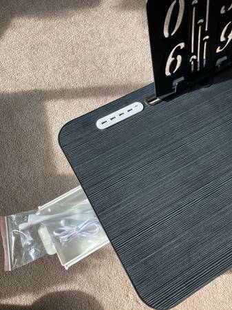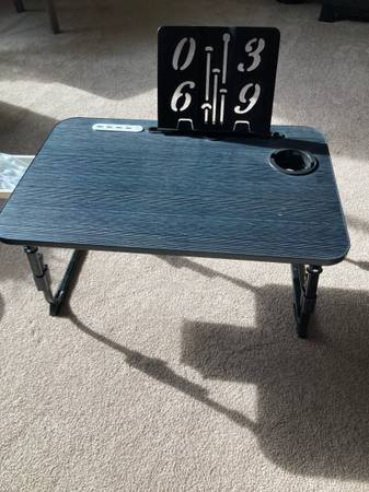 Laptop, desk, height, adjustable with USB, storage drawer, cupholder, tablet, stand, fan, and light! 15.6”D x 22”W x 10.4”H