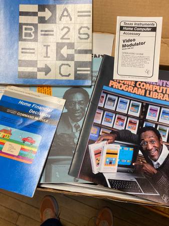 Texas Instrument Home Computer TI-99/4A, Video Modulator, power adapter cord and 1 cartridge (disk manager 2) , manual and books. tested works