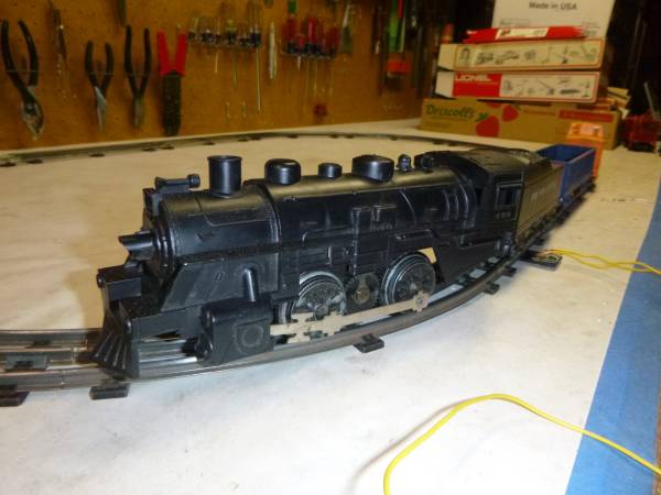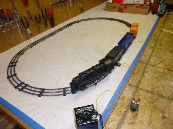 Everything in this set has been serviced, cleaned, well tested and runs good. Tracks were all cleaned on top. Engine was oiled and wheels cleaned for good contact. Transformer works good, and has a 5 amp circuit breaker added for protection that Marx didn't originally sell this set with. Tender and all cars are in very good preserved condition. Can add more track at anytime if you desire. Track connector with wires included also. Comes in original styrofoam packing but the box top is missing. No tools required for set up. Please visit my website as www.ttrainsaver.com for more model trains of all gauges and more.
