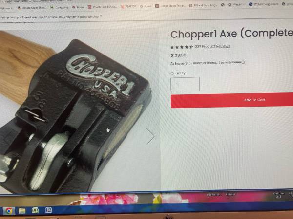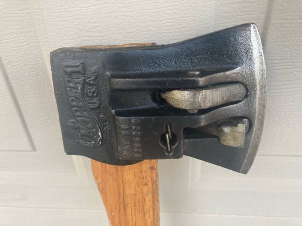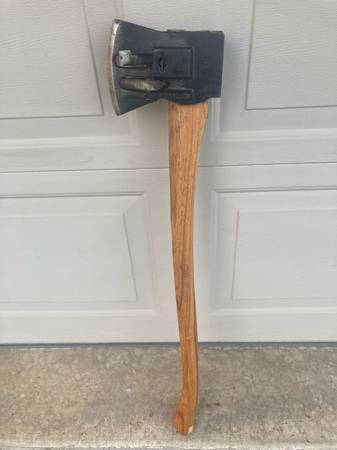 It is 33 1/2” long, made in the USA. Don’t be fooled by any imitation axes. As you can see— these retail for 140.00 plus tax and shipping. There is a chip on the end of the handle and another chip 6” from the metal head. It doesn’t affect the use of the axe. As noted in the pictures— you can get replacement parts online. $85.00 or best offer. Cash only.