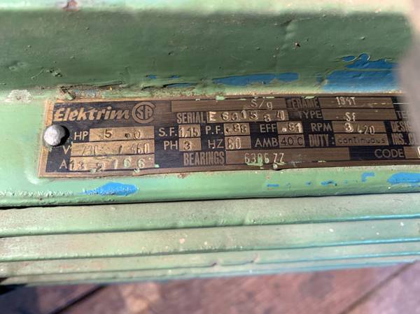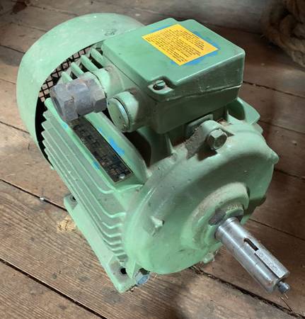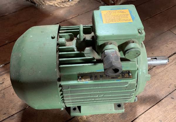 Elektrim 5hp 3ph 3420rpm heavy duty electric motor. Taken off my Joiner and replaced with a 1ph motor as I have no access to three phase power. The motor shaft diameter is 1 1/8".