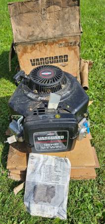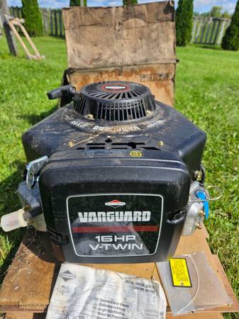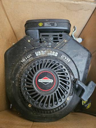 New, never used, Briggs and Stratton 16 HP Vangaurd, vertical shaft engine. This is a new, in the box barn find! See pictures.