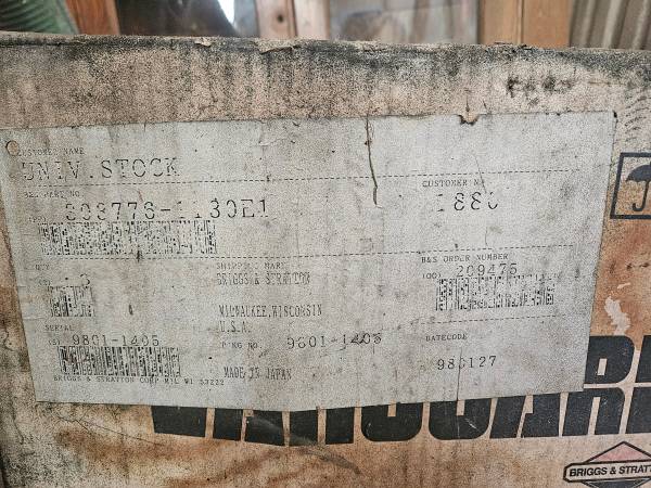 Can possibly meet somewhere to complete transaction. Engine is still on small, original shipping pallet.
