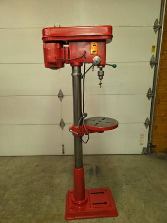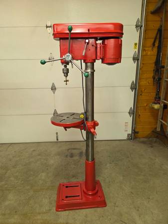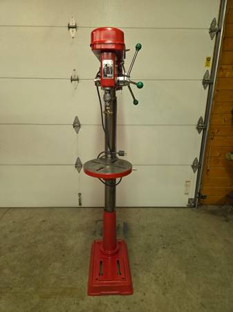 PACKARD PRECISION HEAVY DUTY FLOOR MODEL DRILL PRESS. 1/2 HORASE POWER. TILT TABLE. 115 VOLTAGE WITH LIGHT. THREE PLONG PLUG. 1/2 INCH CHUCK. 65 INCHES TALL. 1725 R.P.M. HEAVY BASE WON'T MOVE AROUND...