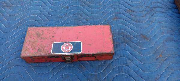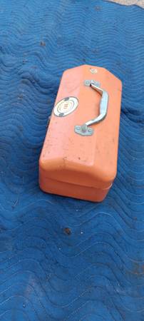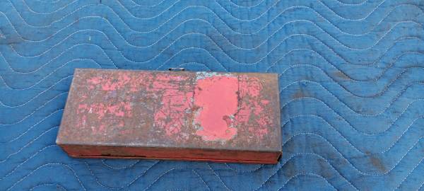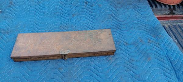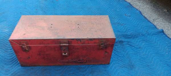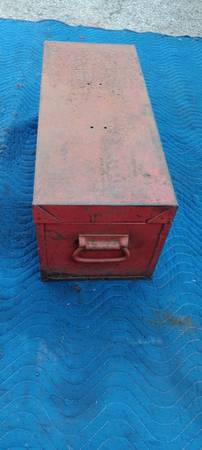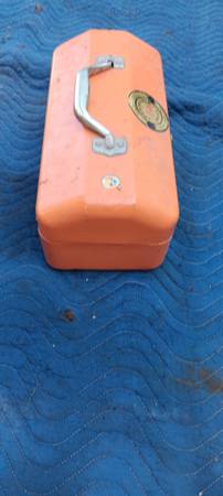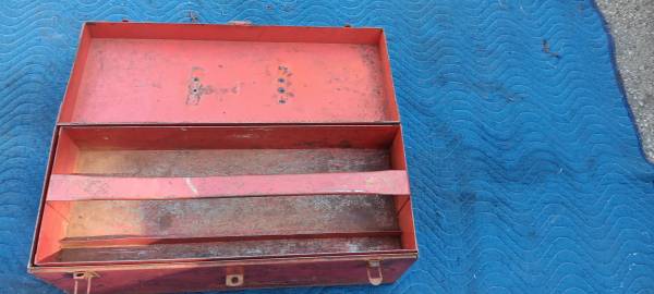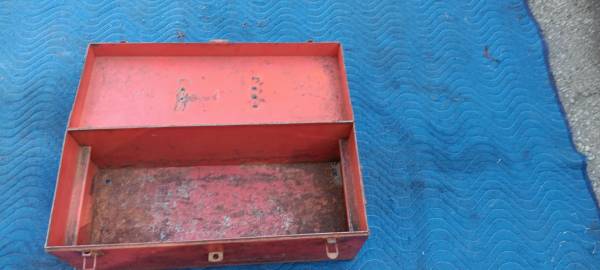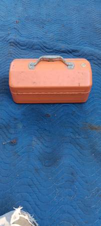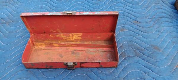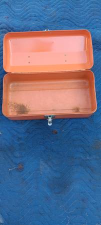 Simonsen toolbox "orange"it has a little surface rust on the inside bottom.13-1/2"L×6-1/2"Wx6"H.$15