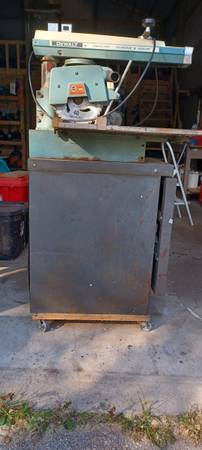 Bench saw with cabinet, working